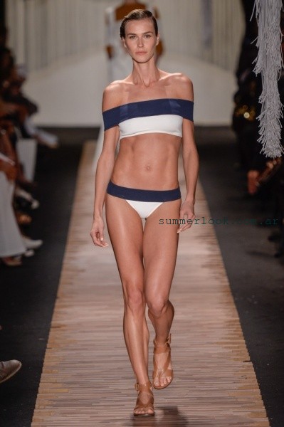 Los look playeros que sobresalieron en las pasarelas son el marinero con rayas blancas y azul marino y las referencias a las redes ta sea en remeras, vestidos o shorts; Tambien versión en blanco y negro con algunos detalles de flores y volados.